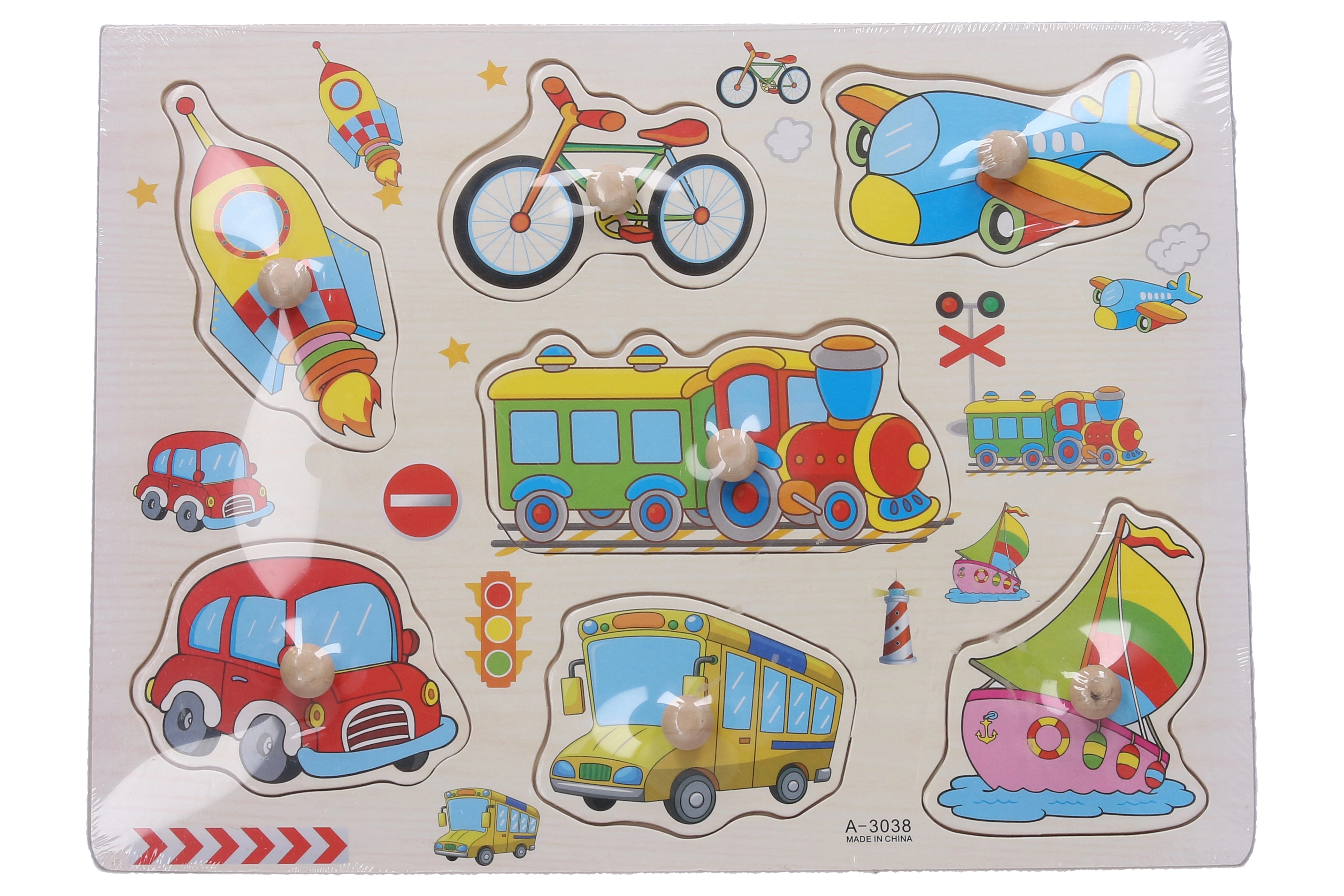 Opdag et sjovt og lærerigt spil for de mindste: træpuslespil med temaet transportmidler i længden 30 cm. Det udvikler finmotorik, genkendelse af former og logisk tænkning og giver samtidig glæde ved læring gennem leg.