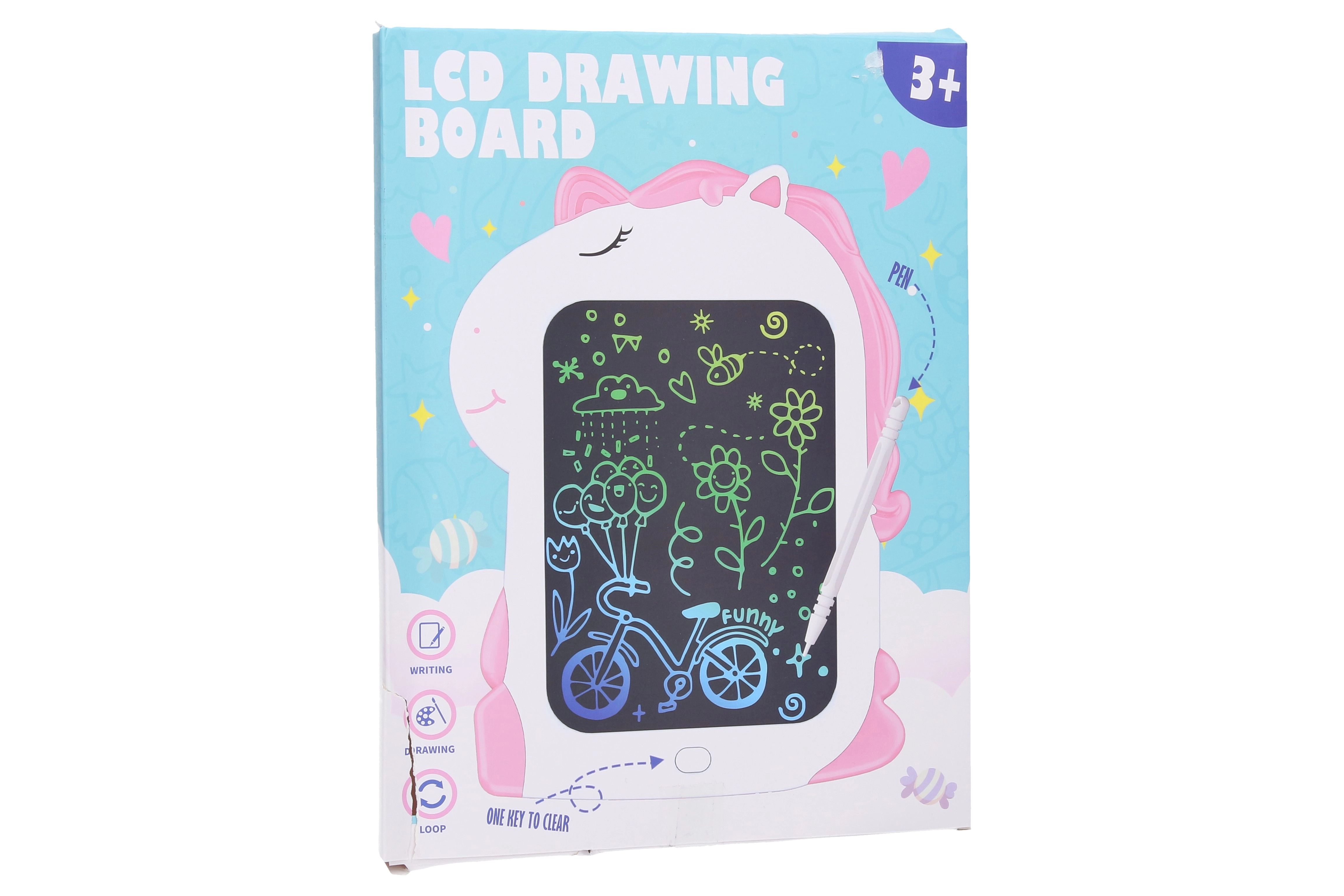 Opdag en let og bærbar tegne-LCD tavle med et sødt enhjørningemotiv, ideel derhjemme, i skolen og på farten. Den glatte LCD-overflade sikrer behagelig skrivning uden striber, og det øjenvenlige display uden bagbelysning skåner øjnene. Med et enkelt tryk sletter du hurtigt alt, og via bagsidens kontakt aktiverer du lås mod utilsigtet sletning.