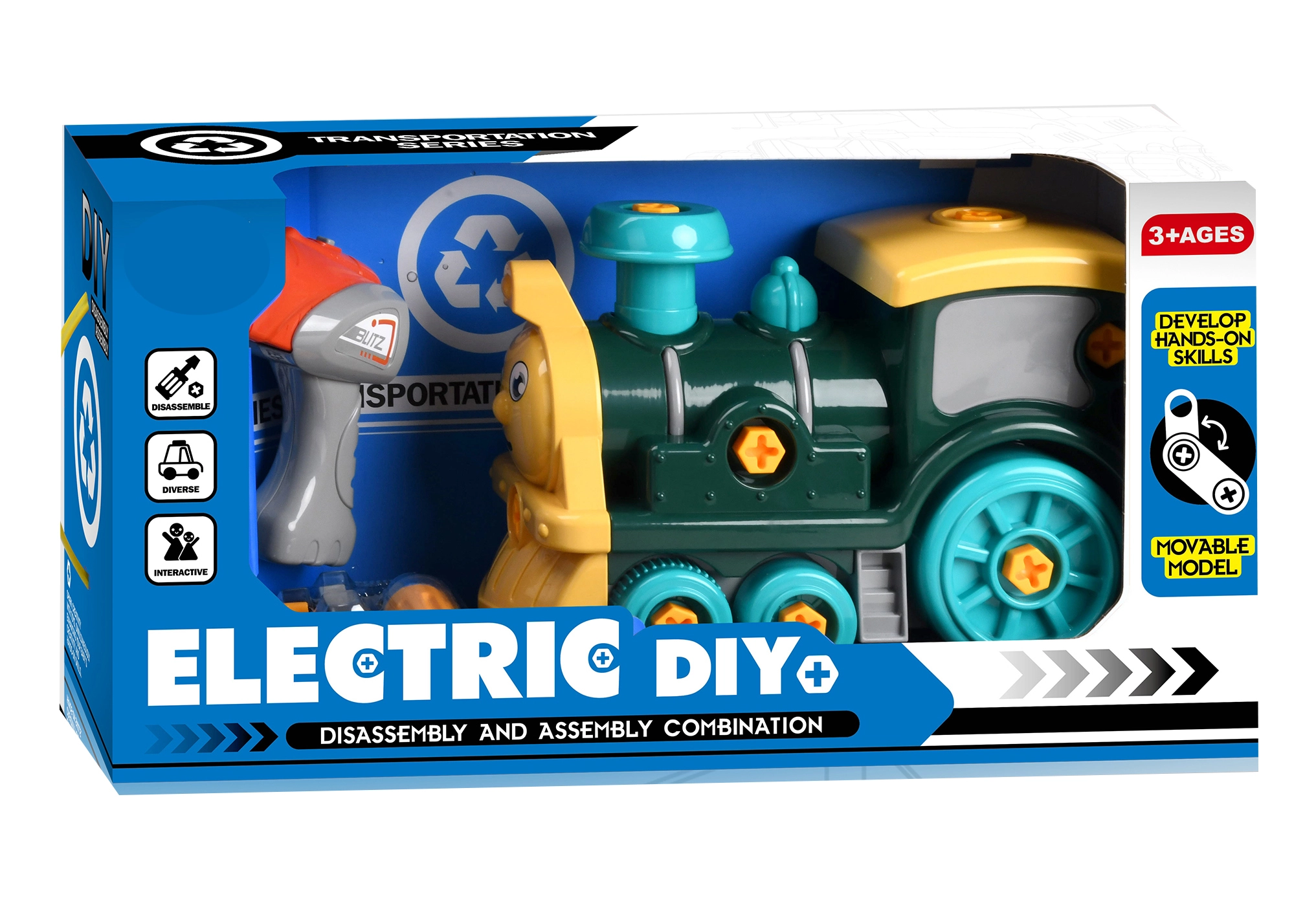 Oplev kreativ leg med et skrue-tog, som børnene selv samler og sætter i bevægelse. Den elektriske enhed fra skruetrækkeren kan nemt tages ud og sættes i toget, hvilket giver en sjov kombination af byggesæt og bevægelig legetøj. Sættet styrker logisk tænkning, tålmodighed og hånd-øje-koordination.