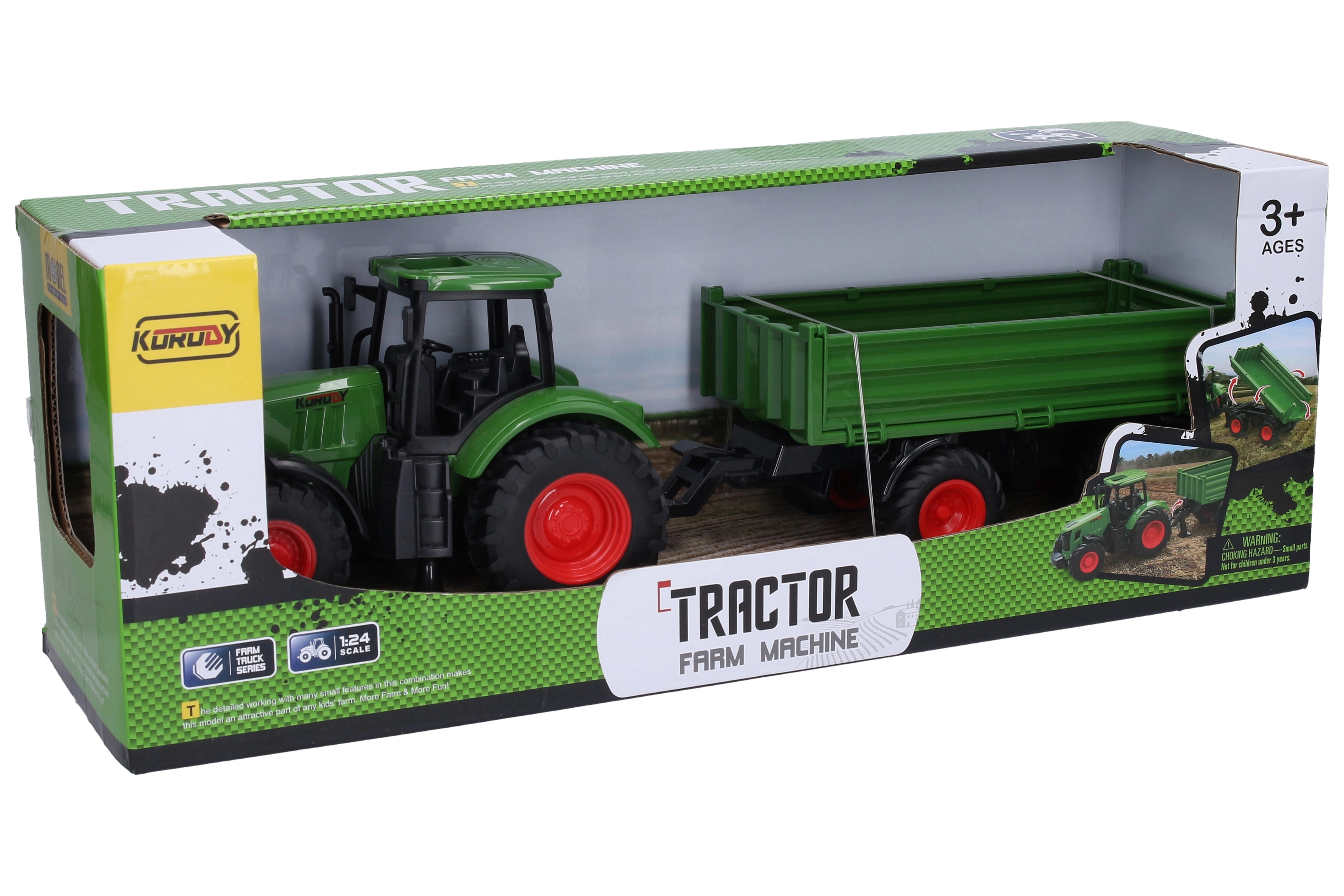 Oplev livet på gården med denne detaljerede traktor med trailer. Takket være friløbshjulene er køretøjet let at styre og ideelt til børnehænder. Den vipbare trailerdør muliggør realistisk lastning og aflæsning, hvilket understøtter kreativ leg og motorisk udvikling.