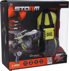 Betjeningen er intuitiv med pistolcontrolleren, som giver præcis styring og jævn acceleration. Med en hastighed på op til 20 km/t får du en dynamisk køreoplevelse, mens ON/OFF-kontakter på bilens underside og på controlleren gør brugen nem.