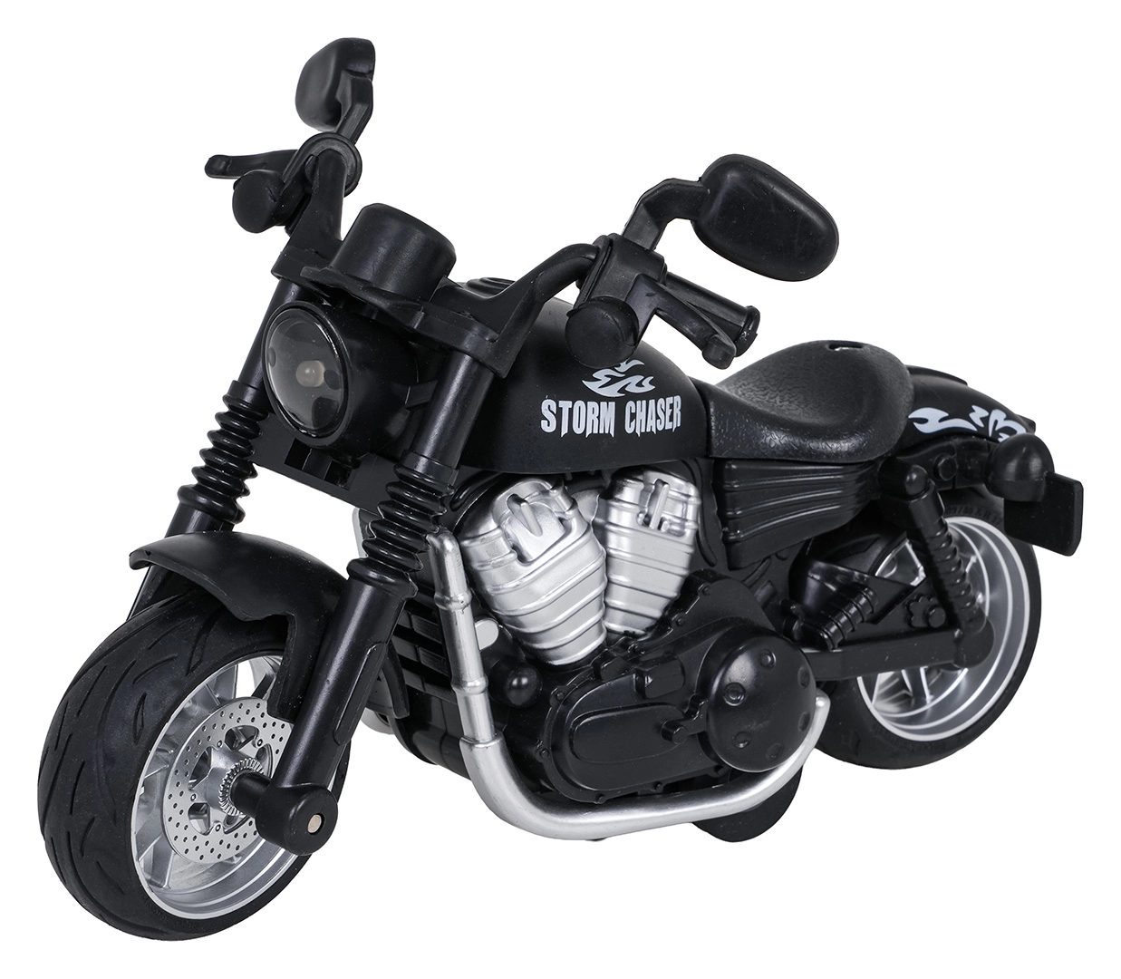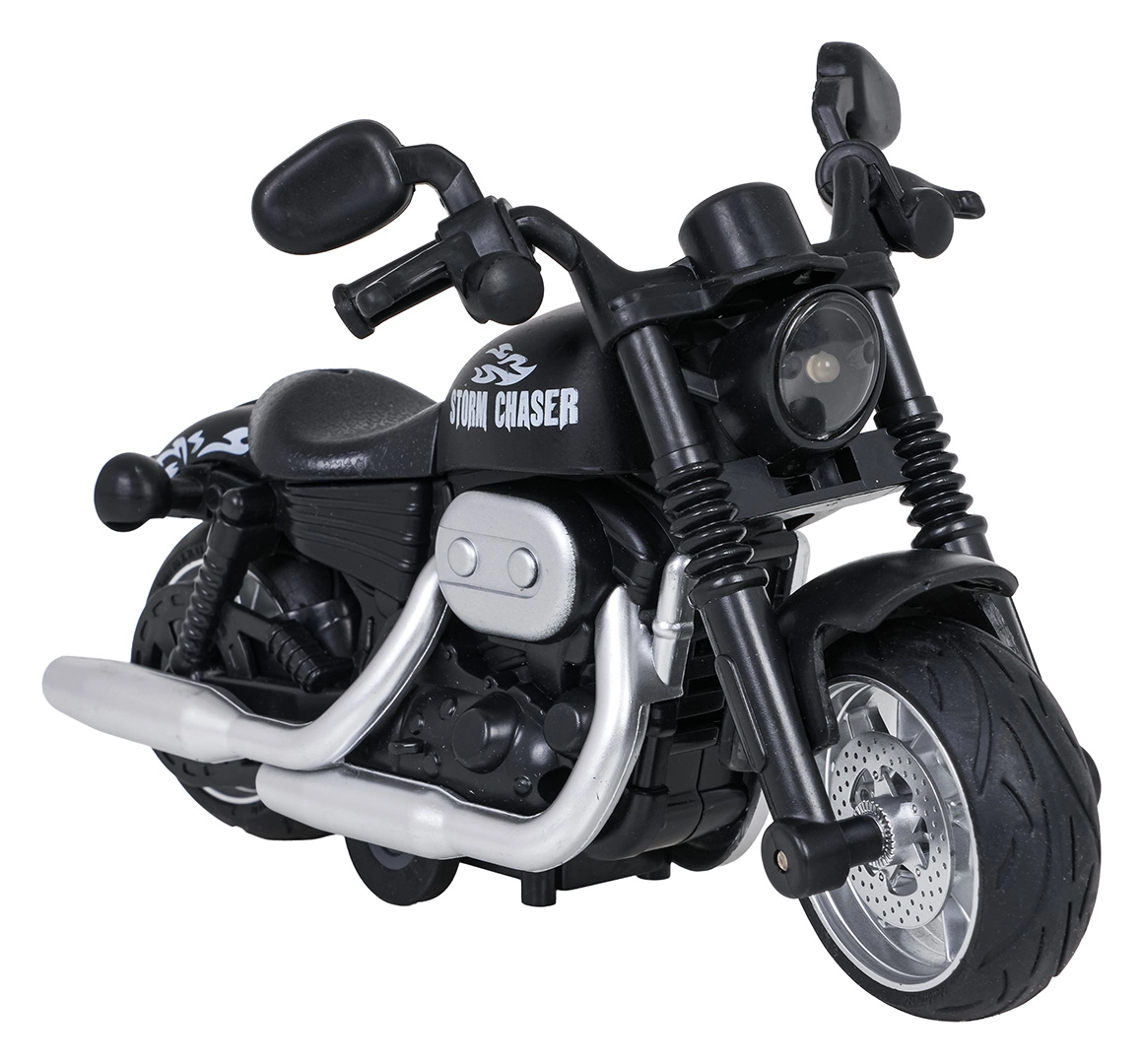Oplev actionfyldt kørsel med den detaljerede motorcykelmodel STORM CHASER. Robust metaludførelse, troværdige detaljer på motor og udstødning samt gummidæk sikrer et flot look og høj holdbarhed under leg. Takket være pull-back-mekanismen er det nok at trække tilbage og slippe – motorcyklen suser afsted.