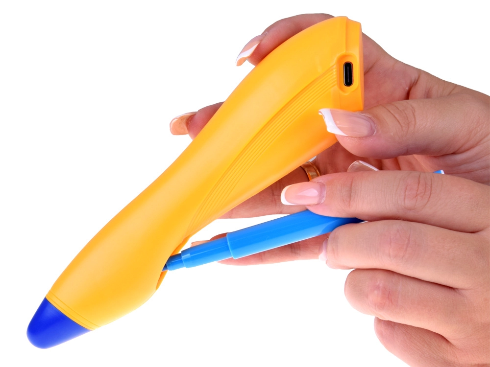 Den praktiske USB‑C-port sikrer hurtig og miljøvenlig opladning. Pennens krop ligger behageligt i børnehånden for sikkert greb og præcis styring.