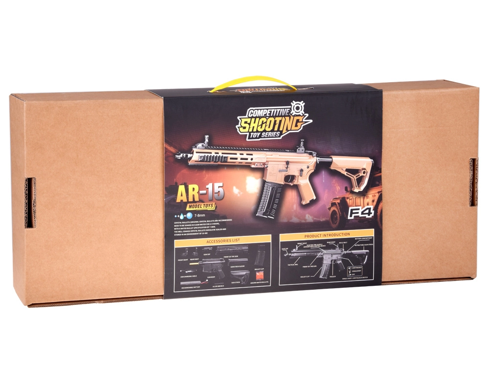 Den elektriske gelpistol F4 bringer actionfyldt underholdning for både børn og voksne. Takket være batteridrift og USB-opladning er håndteringen enkel og bekymringsfri. Det realistiske design med taktiske elementer, sammenklappelige sigter og justerbar kolbe giver en opslugende oplevelse ved lege som soldater- eller politimissioner.
