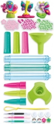 I pakken finder du komplet udstyr inklusive farvede blæk, gennemsigtige rør, dekorationer, perler og gummifigurer. Børn kan dermed designe deres egen stil, kombinere farver og tilbehør og udvikle deres kreativitet og fingerfærdighed.