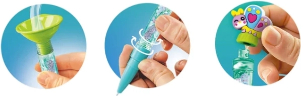 Opdag et sjovt kreativt sæt, hvor børn kan lave op til tre originale penne med flydende dekorationer. Sættet indeholder alt, hvad der er nødvendigt for nem påfyldning takket være stativ og tragt. Understøtter kreativitet, finmotorik og giver en betagende visuel effekt – dekorationerne gynger og flyder indeni pennen, når den er fyldt med vand. En fantastisk gave til enhver lejlighed.