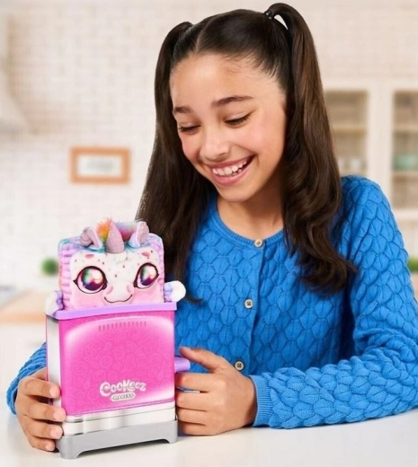 Oplev magien ved at lege kok med Cookeez Makery-brødristeren, som gemmer på en overraskelse – bløde, farverige og duftende plysdyr formet som lækre morgenmadsfavoritter. Du skal blot sætte “skiven” i risteren, trykke ned på håndtaget og afsløre en velduftende maskot fra en af 6 forskellige varianter.