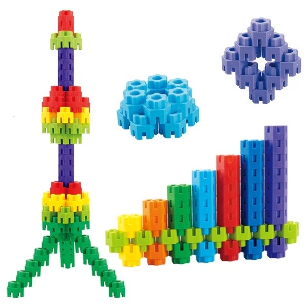 Forbindelse af delene styrker fingre og hånd–øje-koordination, mens byggeri efter egne idéer udvikler planlægning og rumlig tænkning.
