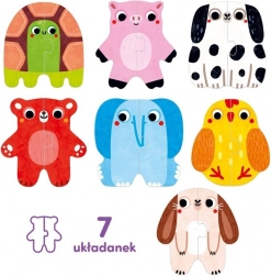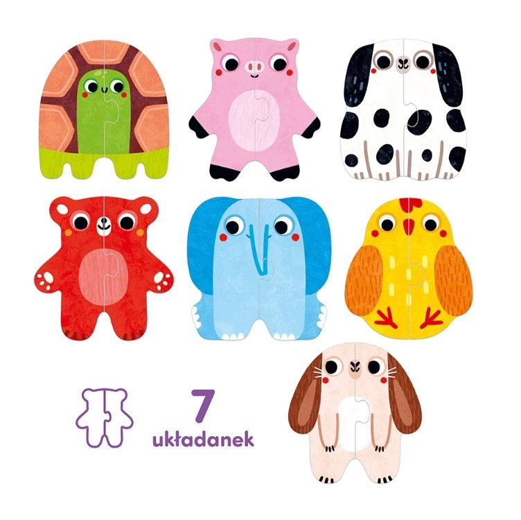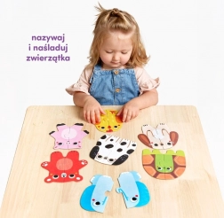 Mit første puslespil – dyrene er det ideelle første puslespil for begyndere. Børn leder efter og samler to halvdele af billeder og udforsker dyrenes verden på en legende måde. Hver korrekt sammenkobling er en lille succes, der motiverer til videre leg.