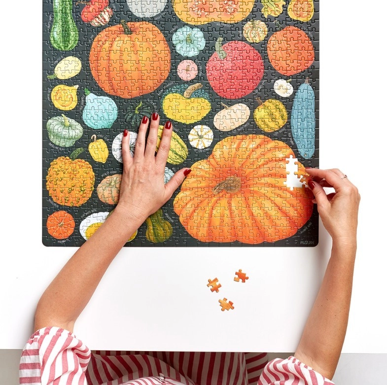Fordyb dig i den gyldne efterårsstemning med puslespillet Puzzlove Græskar. Dusinvis af imponerende græskar direkte fra marken skaber en detaljeret, æstetisk scene, der glæder både designelskere og puslespilsfans. 1000 brikker giver en behagelig sværhedsgrad og belønner dig med et smukt billede, som du kan indramme og udstille.