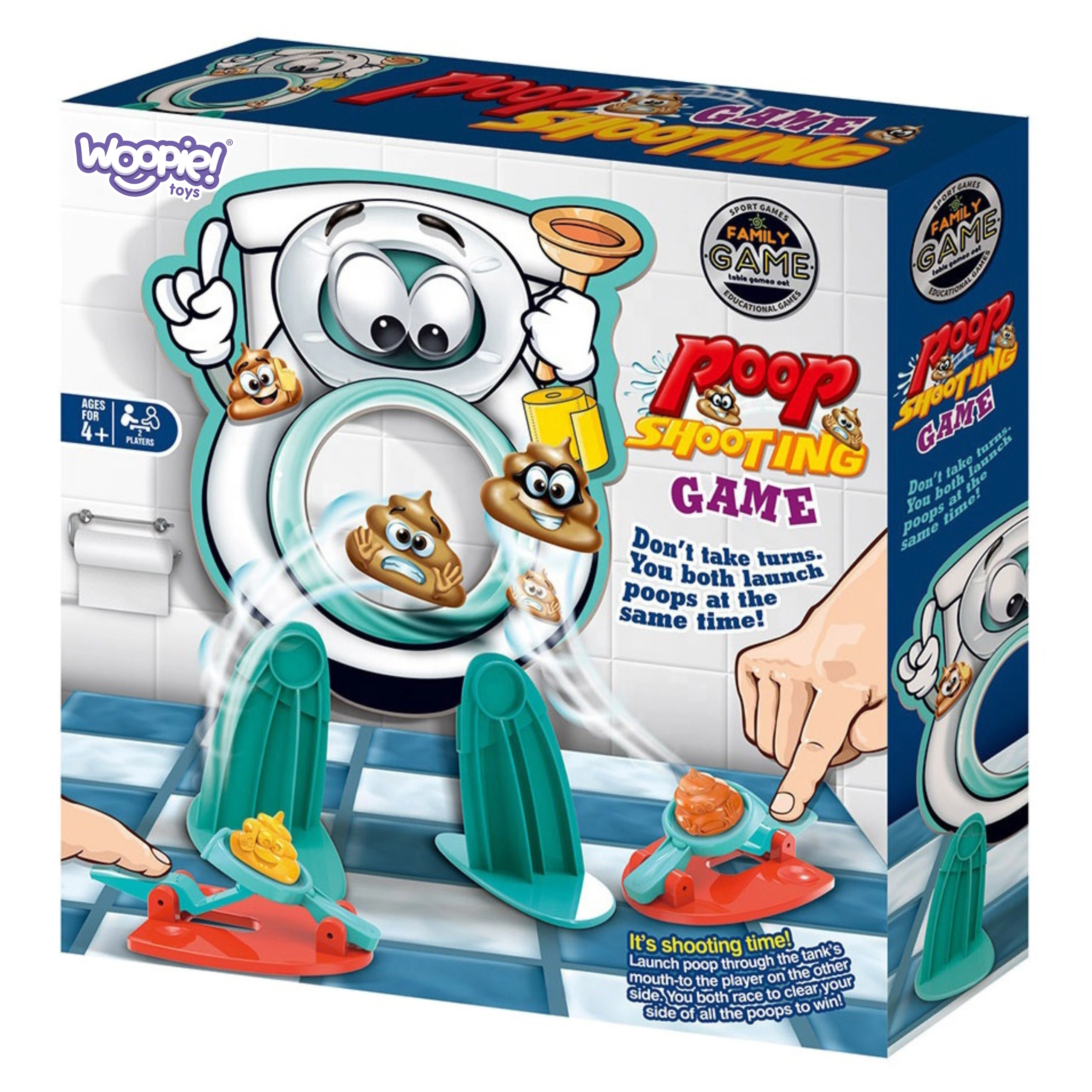 Nyd hurtig, actionfyldt underholdning, hvor både børn og voksne more sig. Spillet Woopie Toilet-skud med pølser udvikler koordinations-evner, præcision og koncentration, samtidig med at det er let at forstå og klar til spil med det samme. Sæt blot toilettet op, gør affyrerne klar og ram målet.