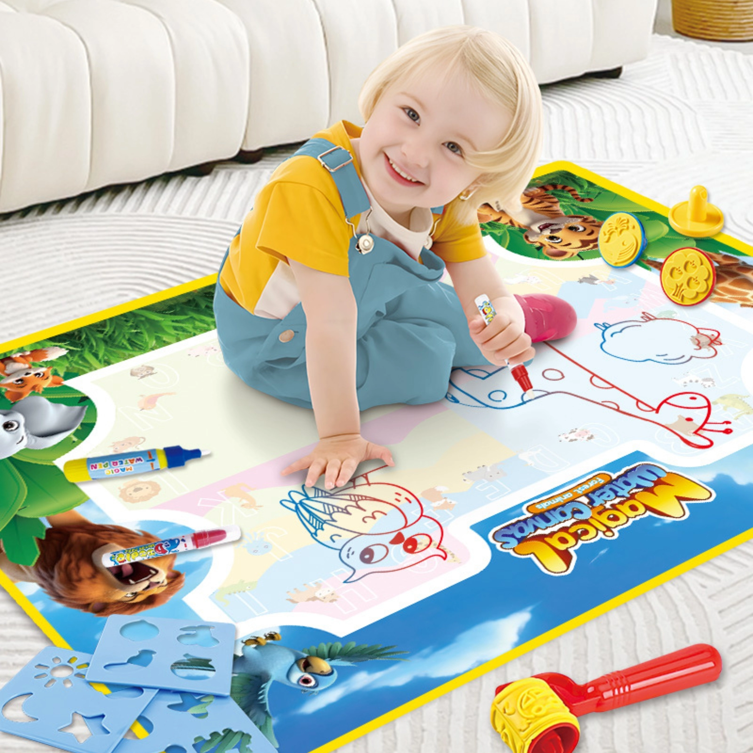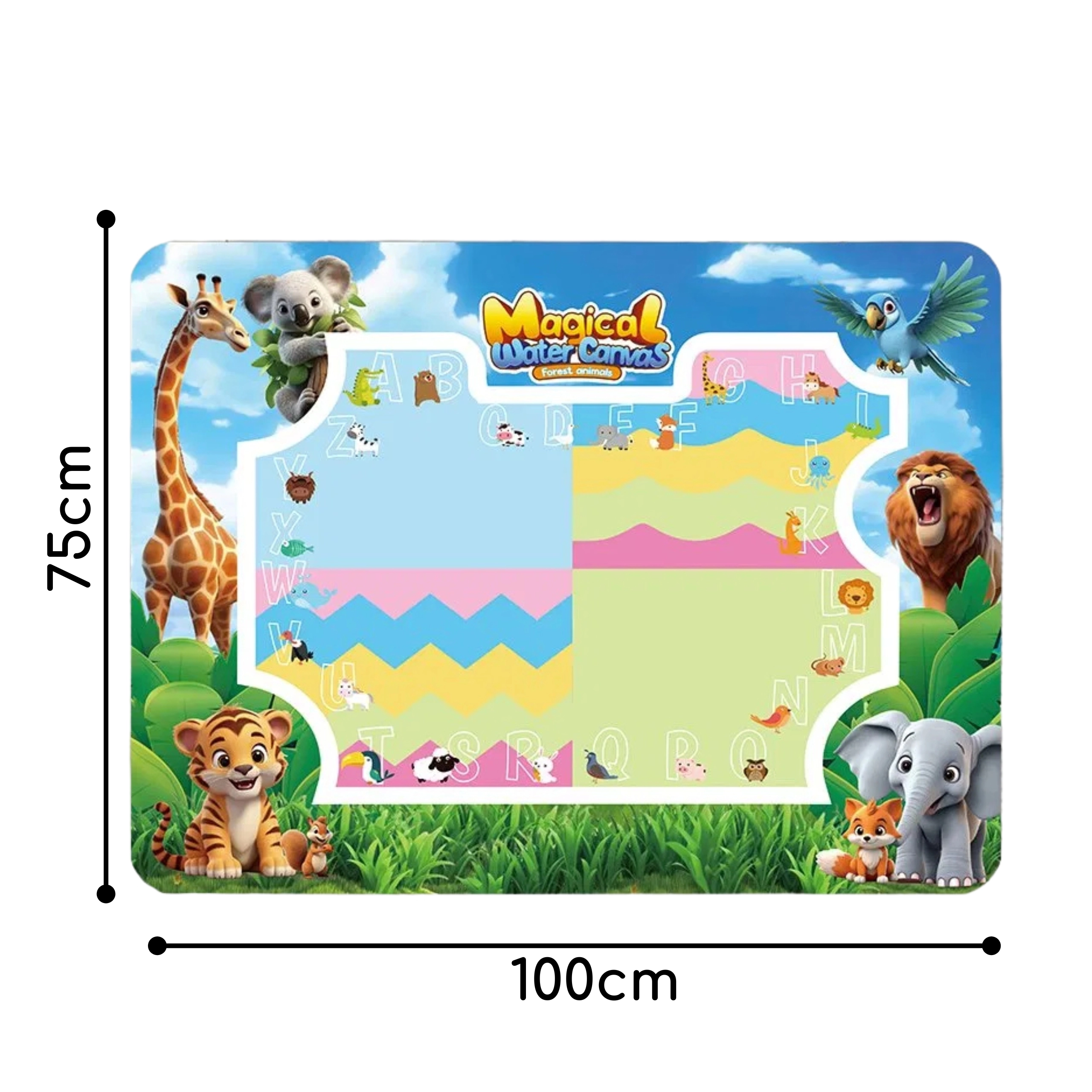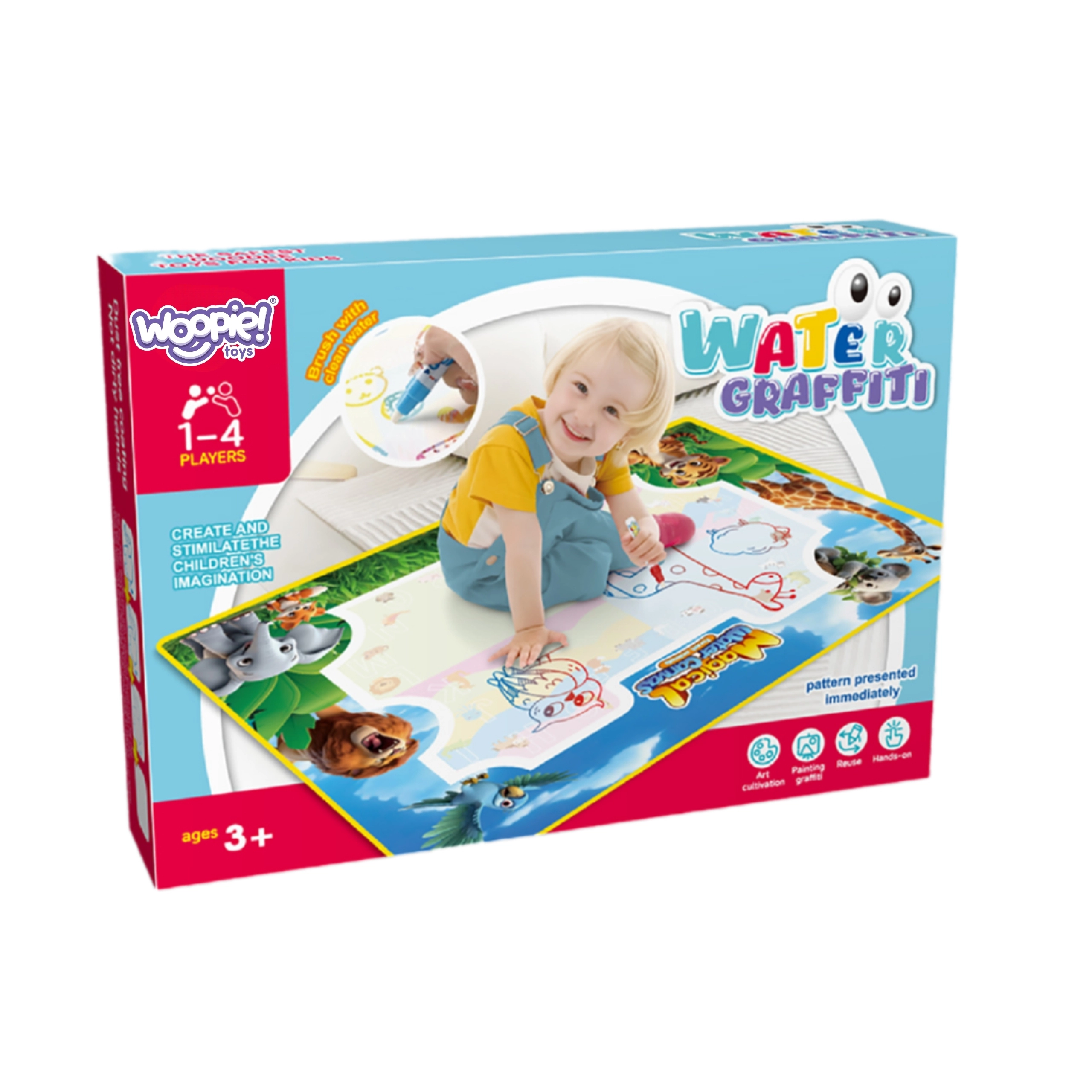 Vandunderlaget fra Woopie er et smart, pædagogisk legetøj, der understøtter finmotorik, logisk tænkning og koncentration – helt uden blæk, kemi og pletter. Den glade safari-grafik motiverer til at lære gennem leg, mens den hurtigtørrende overflade sikrer uendelig gentagelse.