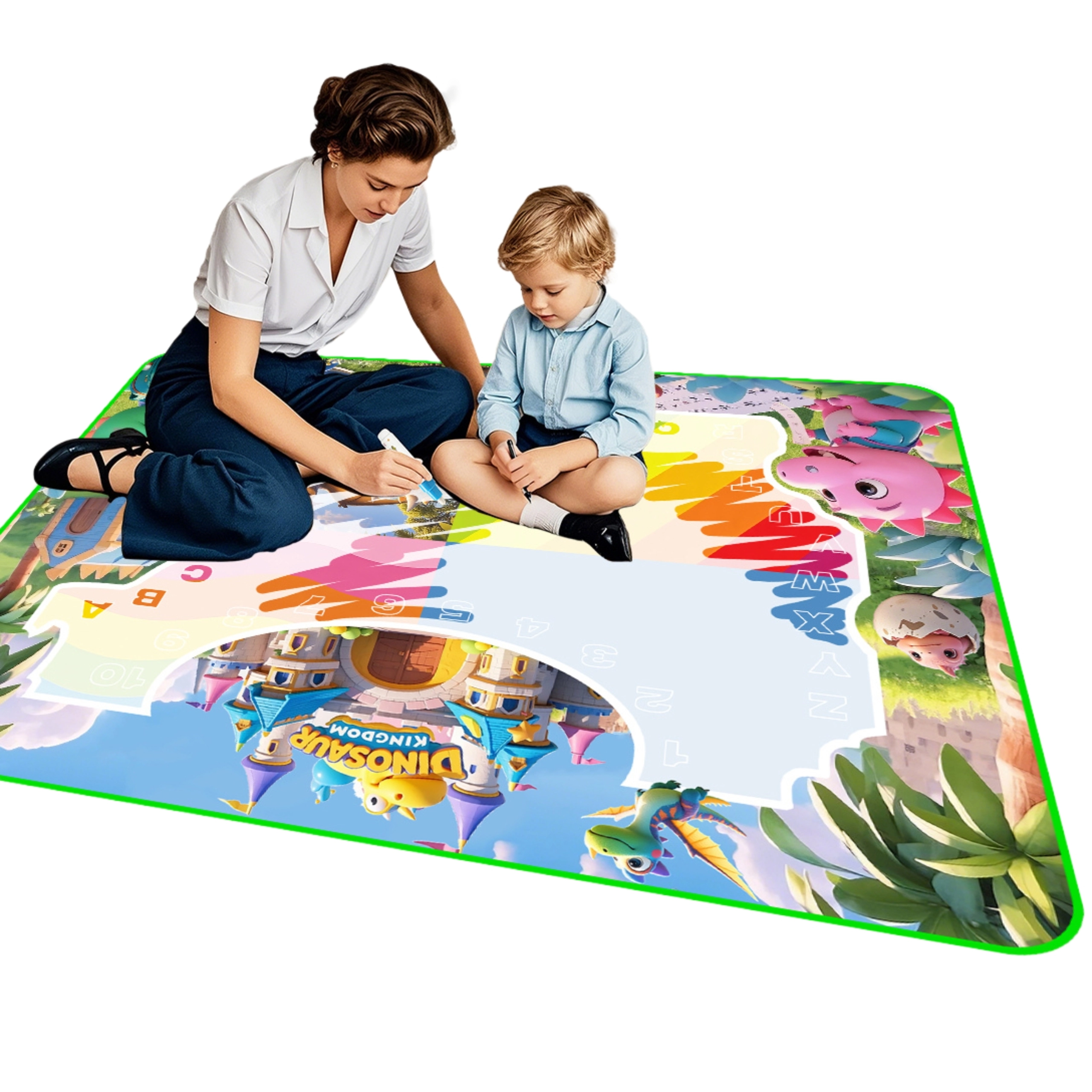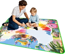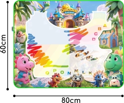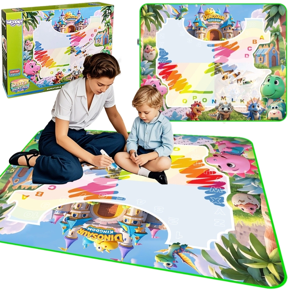 Oplev legende maling uden pletter på tøj og møbler. Dette store vandunderlag med dinosaurmotiver understøtter kreativitet, fantasi og finmotorik. Man maler udelukkende med vand – ingen farver eller tuscher, der snavser omgivelserne til. Efter kort tid forsvinder tegningerne af sig selv, så underlaget kan bruges igen og igen.
