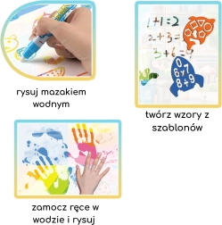 Pakken indeholder vandtuscher, skumstempler og en idébog med inspiration til nye billeder og mønstre. Takket være de større mål er underlaget ideelt til fælles kreativitet for søskende eller forældre med børn.