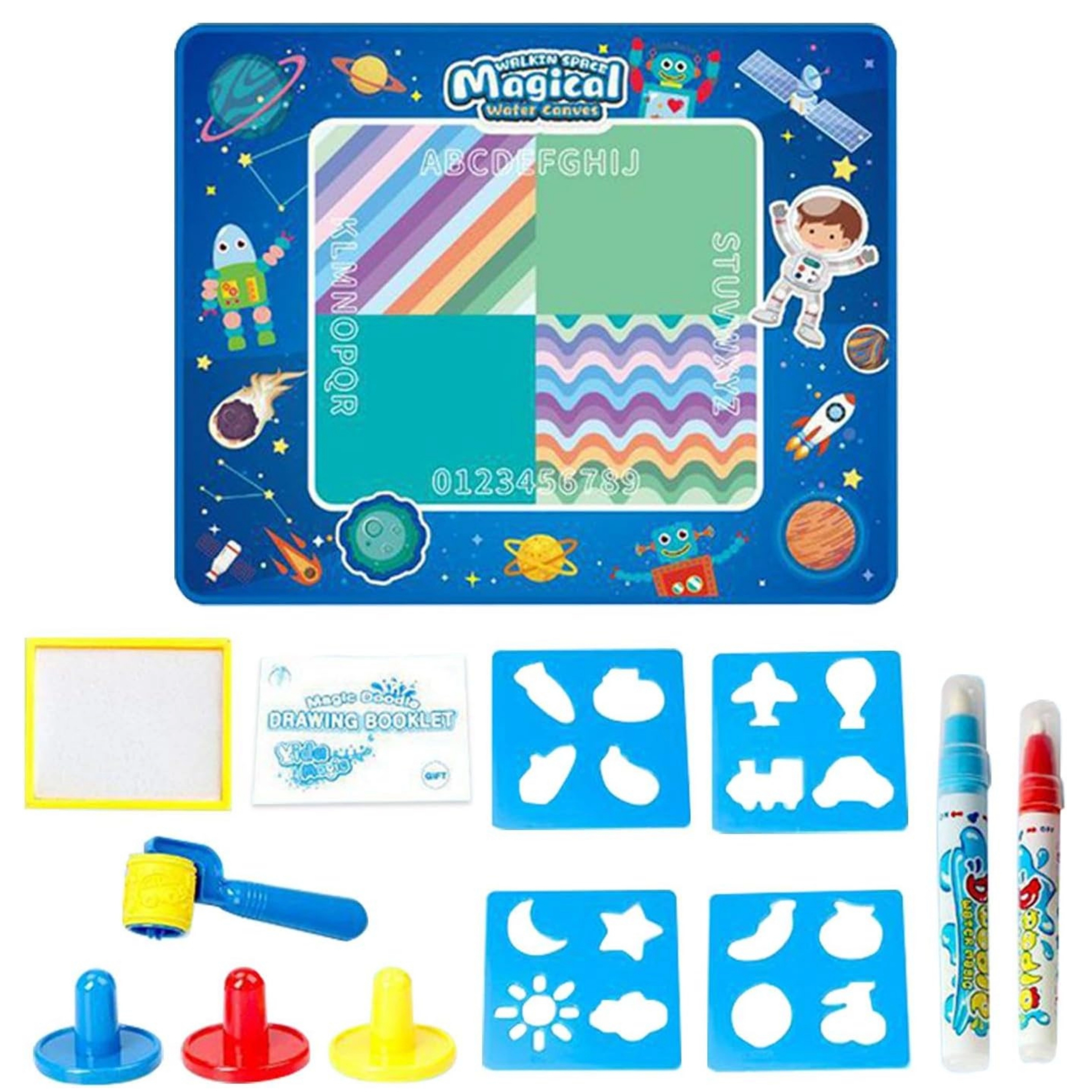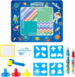 WOOPIE vandtegneunderlaget er en innovativ, lærerig legetøj, hvor børn tegner kun med vand – uden rod og pletter. Tegningerne forsvinder efter et par minutter, så man kan skabe igen og igen. Det store format og det rige tilbehør sikrer timer med sikker og kreativ leg hjemme og i børnehaven, mens rum-temaet stimulerer fantasien.