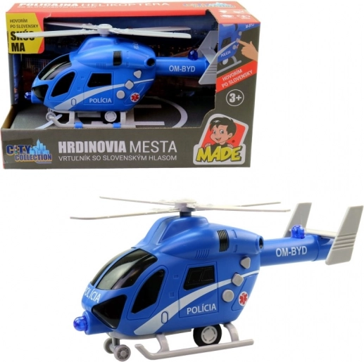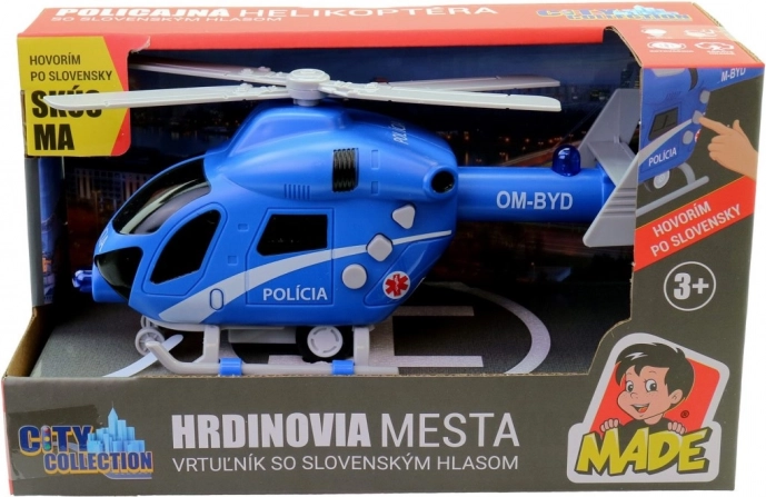 Politiets helikopter fra MaDe er det ideelle valg til små helte, der elsker action. Takket være friktionsmotor kører den let hen over underlaget, mens lys og lyd giver legen autenticitet. Den robuste plastkonstruktion sikrer holdbarhed ved daglig leg.