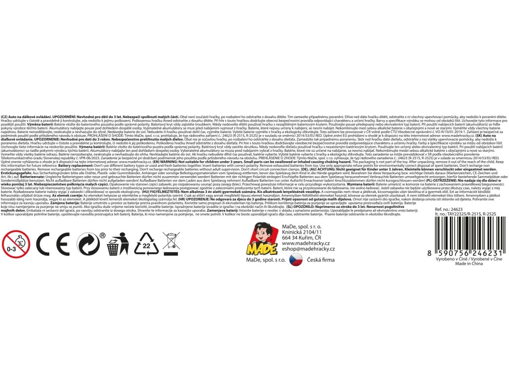 Denne RC-bil er designet til sikker og underholdende kørsel både inde og ude. Takket være den enkle betjening kan børn bruge den uden tidligere erfaring, mens det holdbare plastkarrosseri klarer daglige stød og forhindringer.