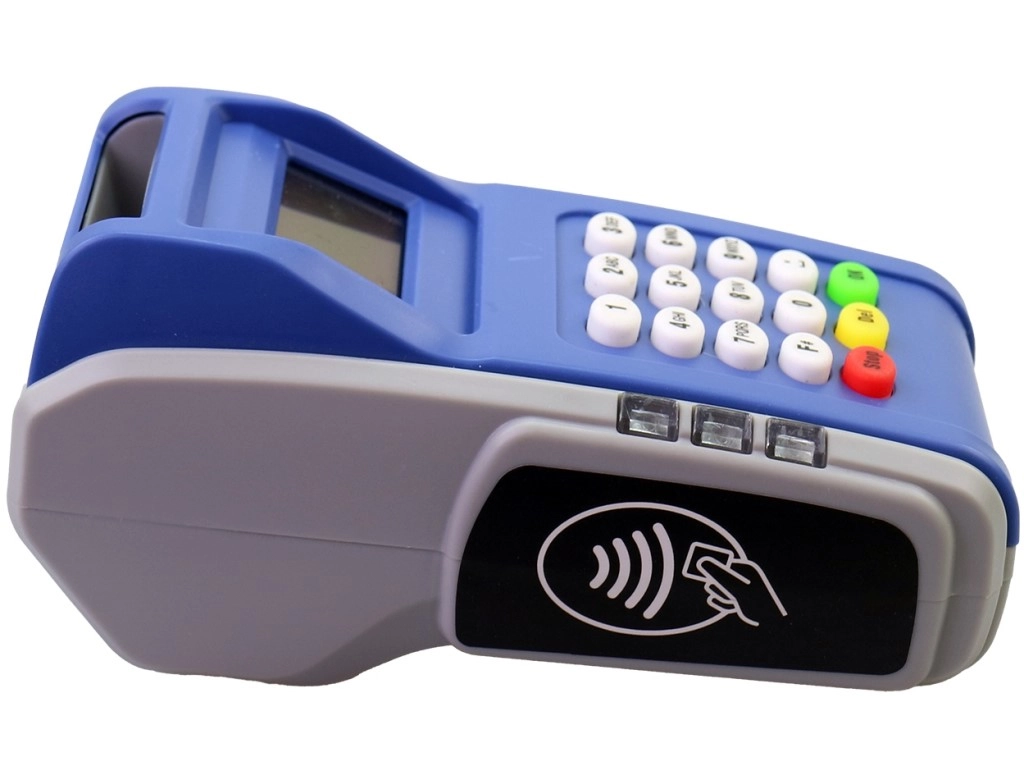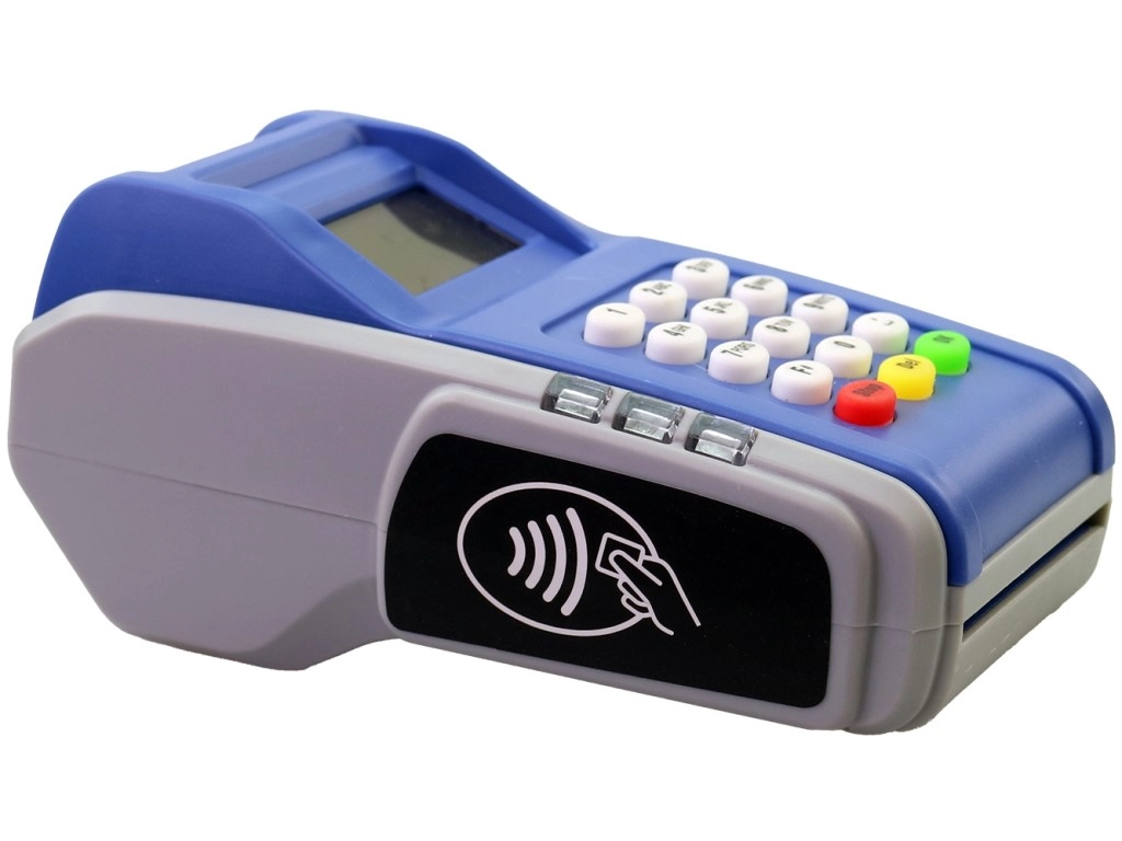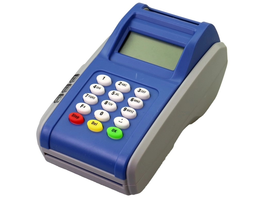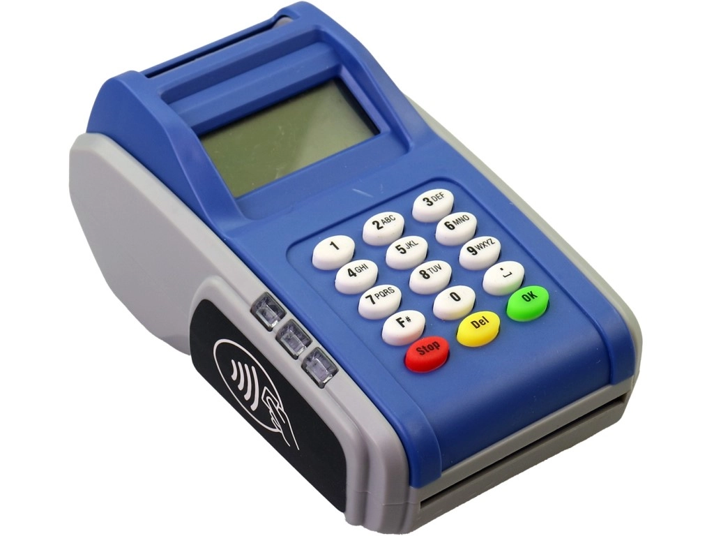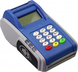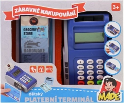 Det lille display, det numeriske tastatur og de farvede funktionsknapper lærer børn at indtaste beløb og bekræfte betalinger på en sjov måde.