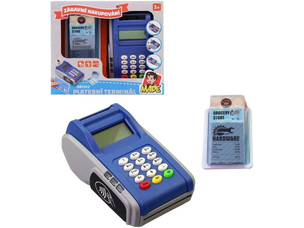 Børne-betalingsterminalen gør enhver butikleg til en realistisk oplevelse. Små kassemestre kan indtaste beløb via det numeriske tastatur, “tappe” kort takket være den kontaktløse funktion og træne både kommunikation og regnefærdigheder. De kompakte mål 17 × 14 × 6,5 cm passer i rygsæk og børnetaske, så terminalen er velegnet hjemme, på rejser og i institution.