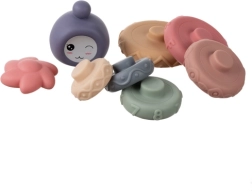 Fremstillet af blødt, ikke‑giftigt materiale med afrundede kanter. Børn kan trygt klemme og tygge på delene, hvilket beroliger gummerne og stimulerer sanserne.