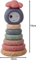 Dette sæt med 8 bløde sensoriske klodser og ringe er designet til de mindste opdagelsesrejsende. Dele i pastelfarver med relieffer, tal og bogstaver understøtter taktil udforskning, genkendelse af former og farver samt tidlige læringsevner. Sættet er sikkert, let at rengøre og motiverer børn til at udforske, klemme, stable og bygge enkle konstruktioner.