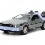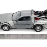 Det ikoniske bilmodel TILBAGE TIL FREMTIDEN i skala 1:24 vil glæde enhver samler og fan af filmklassikere. Præcis metaludførelse, funktionelle åbningsbare vingedøre, detaljeret forarbejdning og lys-effekter gør denne tidsmaskine til et perfekt stykke til hylden eller til udstilling.