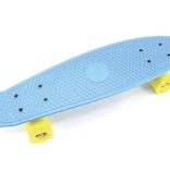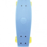 Gule hjul dæmper ujævnheder for behagelig cruising. Den blå plade giver din kørsel et friskt look.