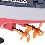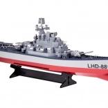 RC krigsskib LHD-881 imponerer med detaljeret dæk og overbygninger, dobbelte skruer for sikkert greb og realistiske elementer. Med intuitiv styring på 2,4 GHz kan du sejle komfortabelt selv med flere modeller i nærheden uden forstyrrelser. Tør modellen af efter sejlads, og placer den på det medfølgende stativ.