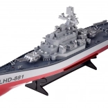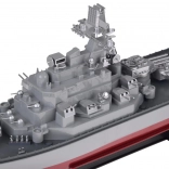 Detaljeret dæk, overbygninger, radarer og kanoner giver modellen et imponerende udseende. Et stabilt stativ medfølger, så skibet tager sig flot ud efter hver sejlads.