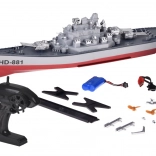 - skib, sender, 7,4 V batteri, USB-kabel, stativ, dekorative dele
