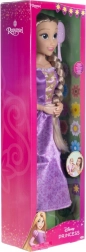 Denne store Rapunzel-dukke vil begejstre alle eventyr-elskere. Med en højde på cirka 80 cm føles hun som en rigtig legekammerat og er flot at udstille på børneværelset. De lange flettede hår indbyder til at børste, flette og skabe nye frisurer, mens de bevægelige led og muligheden for at stå selv udvider legeoplevelsen.
