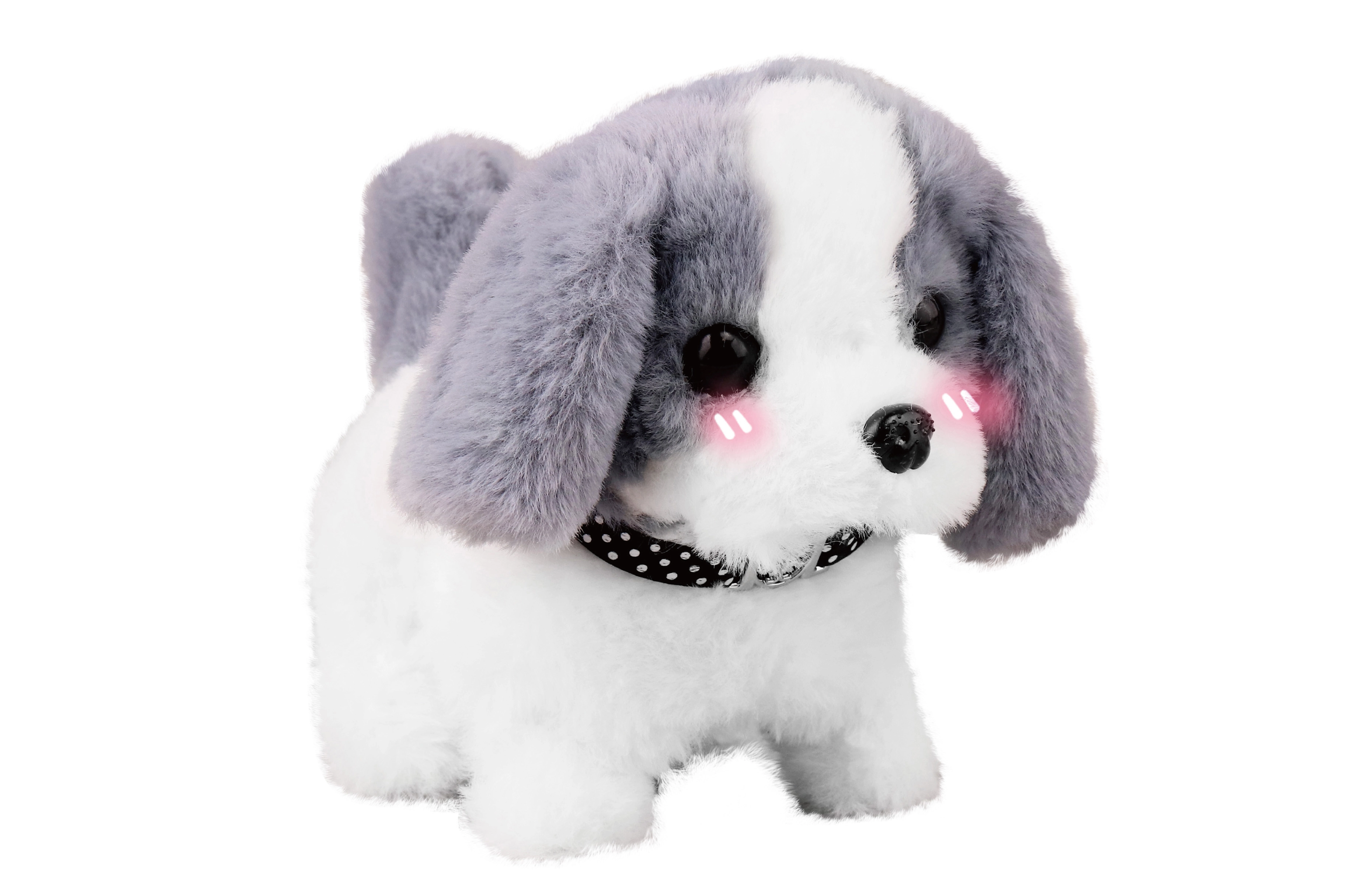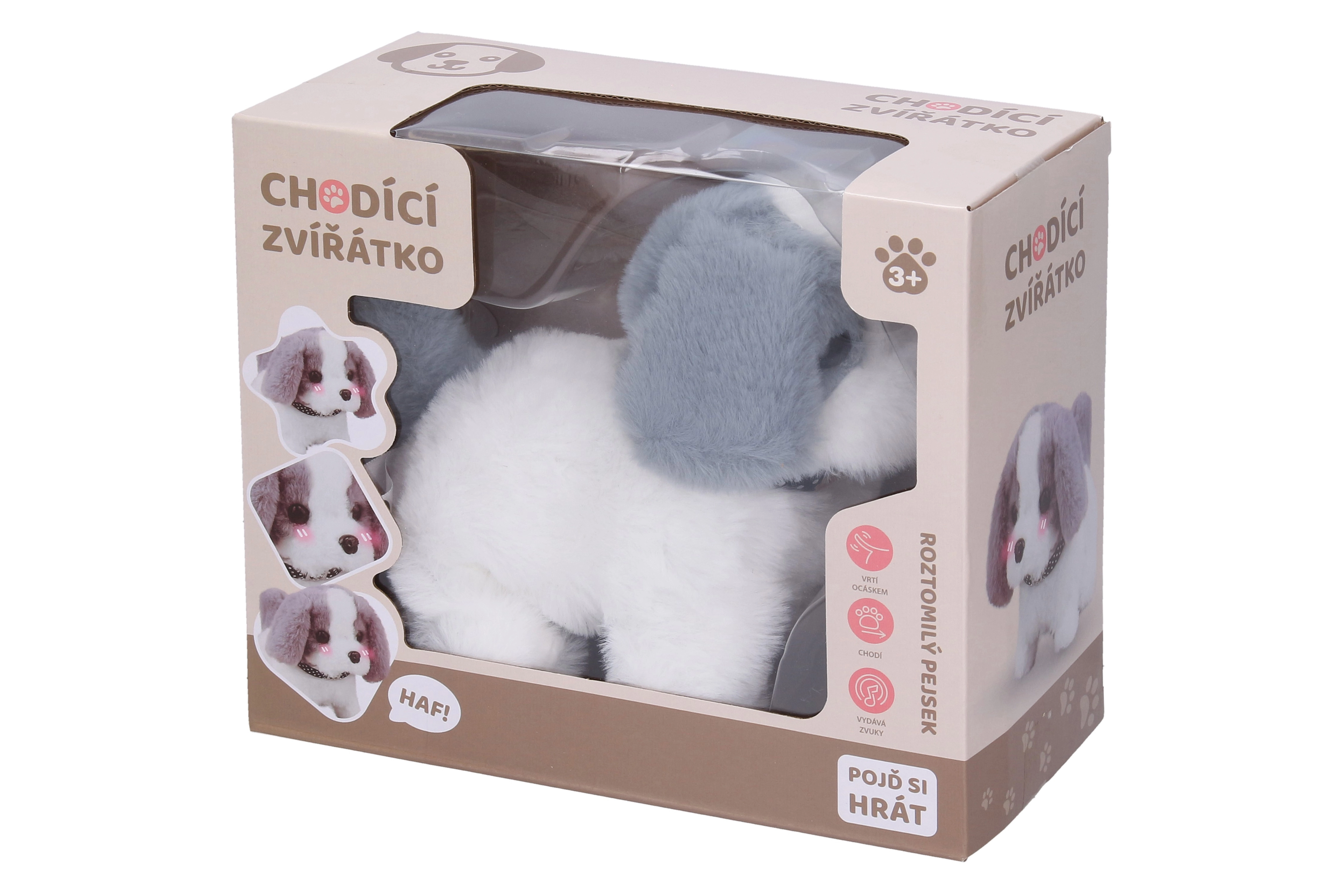 Denne gående plyshund er en ideel ledsager til børns lege. Når den tændes, bevæger den sig sødt, logrer med halen og giver endnu mere sjov takket være lys- og lydeffekter. Den kompakte størrelse og lette konstruktion sikrer behagelig leg både hjemme og på farten.