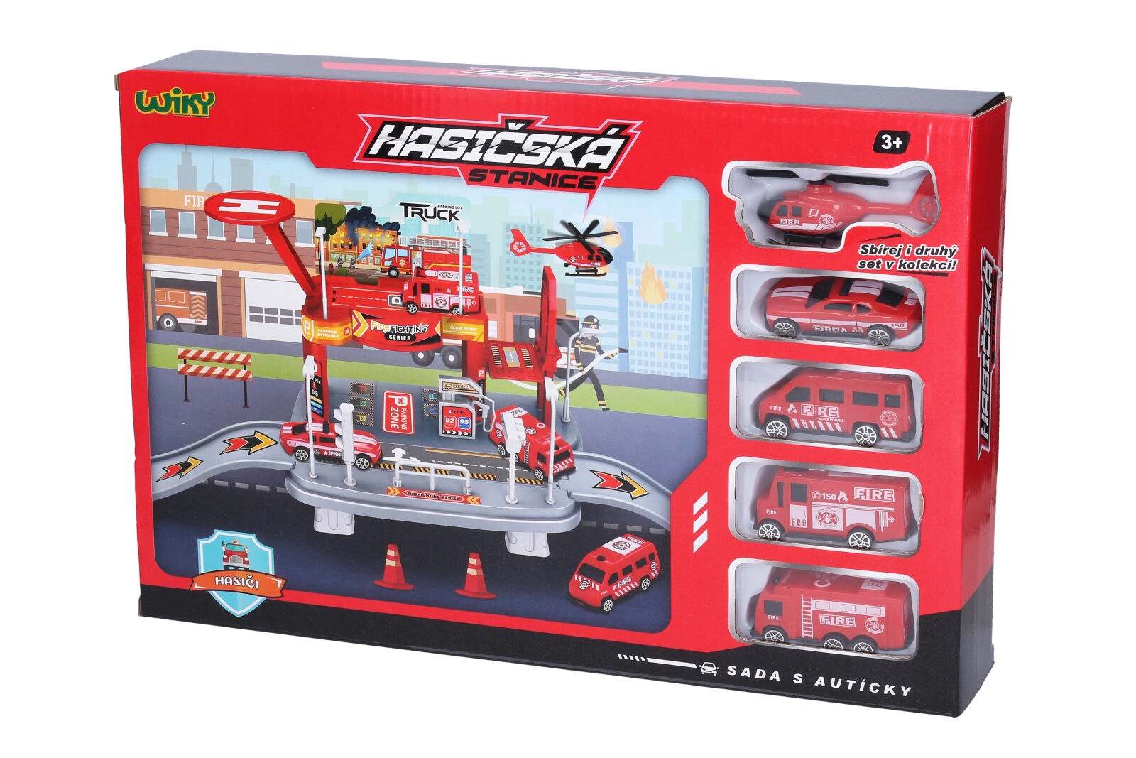 Legesættet indeholder 4 kompakte biler på 7 cm og en helikopter på 9 cm – ideelle størrelser til små børnehænder. Den tjekkiske emballage med en billedvejledning på siden af pakken muliggør hurtig og problemfri samling af stationen.