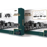 Vand til røgeffekten hældes nemt i tanken placeret under den sølvfarvede skorsten. Betjeningen er intuitiv med ON/OFF-kontakten på lokomotivets venstre side. På emballagen finder du vejledning til batteriskift, sammenkobling af vogne og påfyldning af vand.