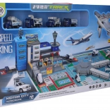 Byg din egen travle lufthavn derhjemme! Dette sæt bringer alt, hvad børn behøver til spændende scener fra flytrafikken – fra landinger til bevægelse af servicebiler på pladsen. Metalbilerne og flyet virker realistiske, og takket være friløbshjulene er legen glidende og sjov.
