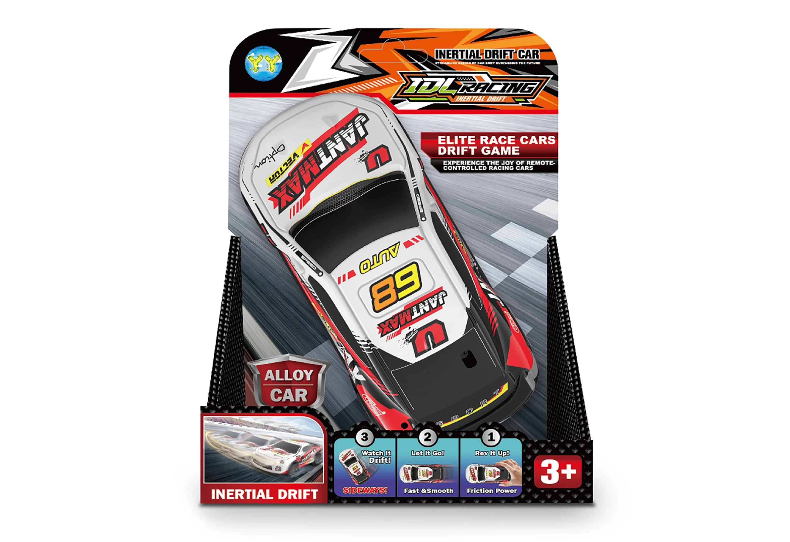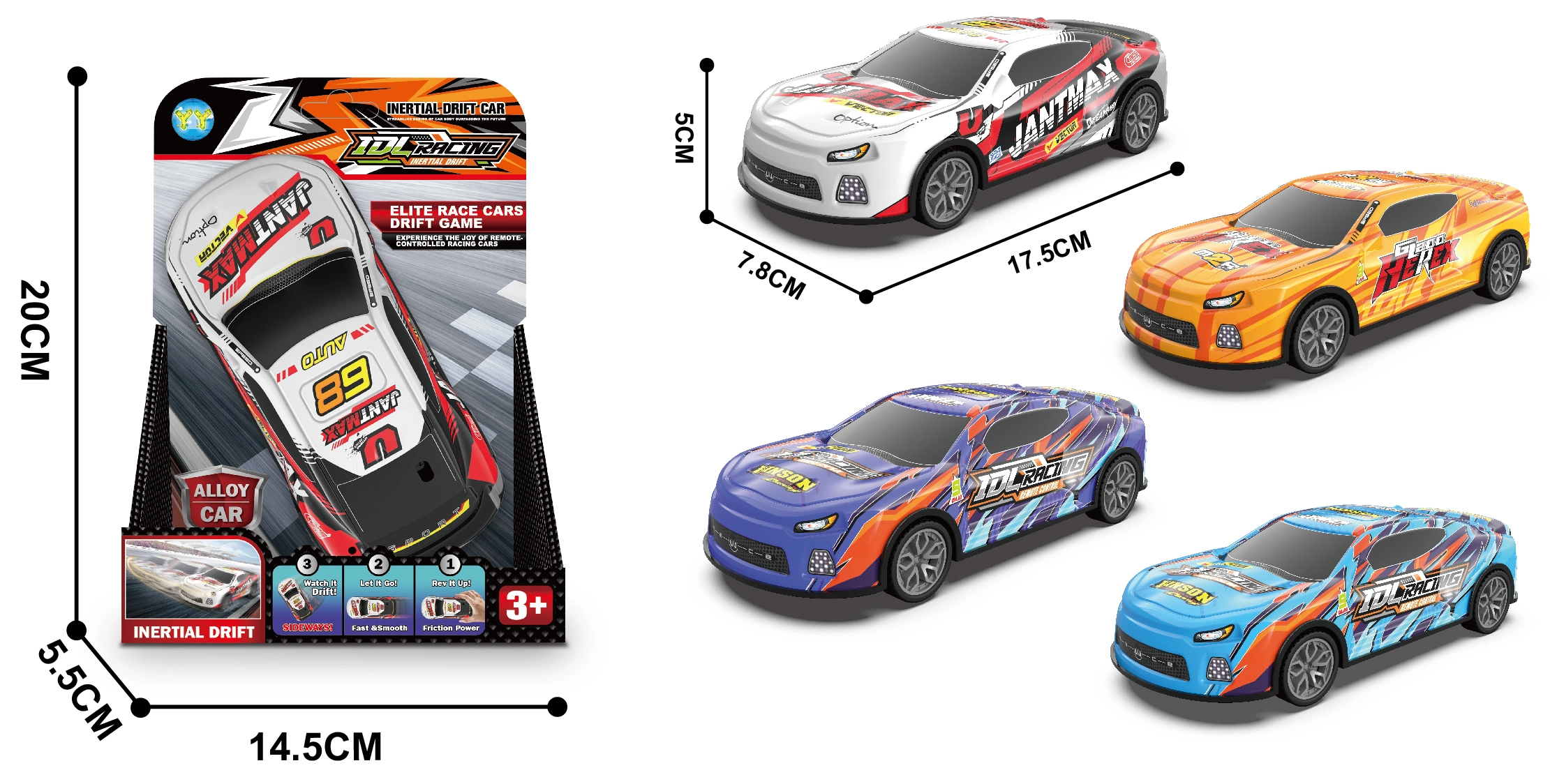 Nyd et adrenalinsus med denne drifte metalbil med friktionsmotor. Det er nok at sætte hjulene i gang og slippe – bilen kører afsted og laver en effektfuld drift. Kompakt størrelse 17 × 8 cm, robust metaludførelse og flere farvevarianter for endnu mere sjov.