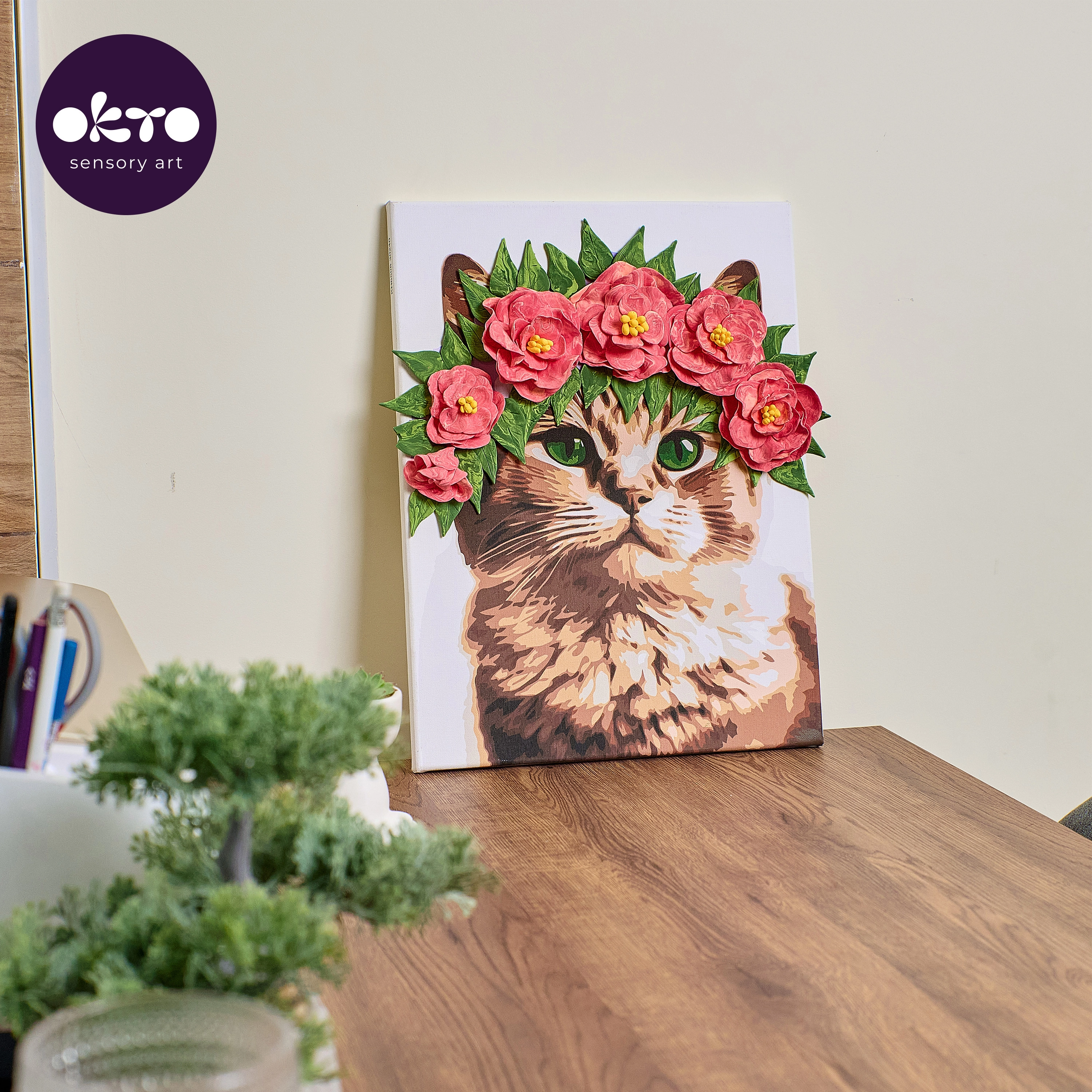 Skab dit eget kunstværk med det kreative sæt OKTO maling og 3D-modellering. Dette billede Kat med blomsterkrone i formatet 30 × 40 cm kombinerer maling og 3D-modellering for en imponerende plastisk effekt. Sættet indeholder alt, hvad du behøver, og er ideelt til en kreativ eftermiddag. Sværhedsgrad 4/5 vil glæde entusiastiske hobbykunstnere, der ønsker en udfordring.