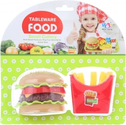 Dette sæt indeholder en realistisk udformet plastisk burger med separate ingredienser, der frit kan sammensættes, samt en portion pommes frites. Børn kan på en legende måde prøve at tilberede en favorit-snack og udvikle deres kreativitet.