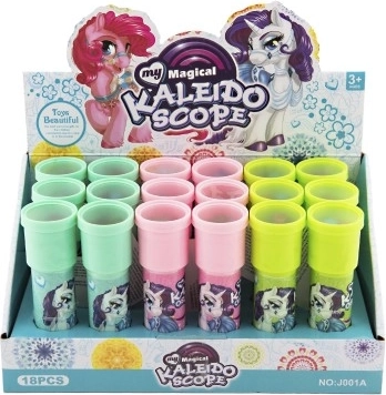 Kalejdoskop, også kaldet krasokop, er et tidløst stykke legetøj, som ved kig mod lyset ved hjælp af et system af spejle og farvede elementer skaber unikke og konstant skiftende mønstre. Enhjørningemotivet vil glæde alle små drømmere og elskere af magiske verdener.