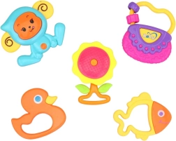 Dette alsidige ranglesæt glæder enhver baby med varierede former og lyde. De lette og letgrebede rangler stimulerer sanserne, udvikler hånd-øje-koordination og giver en beroligende lydrespons ved hver bevægelse.