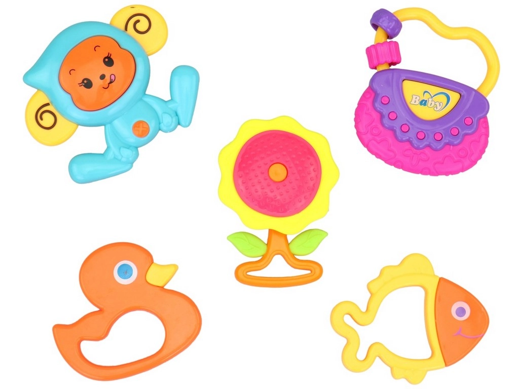 Et farverigt sæt rangler til de mindste, der giver både underholdning og sanseudvikling. Indeholder 5 stk. lette rangler af sikker plast, velegnet til børn fra 3 måneder. Den ideelle størrelse 8,5 × 10 cm passer i en lille barnehånd og understøtter finmotorik og høresans.