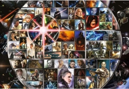 Oplev de mest kendte helte og skurke fra STAR WARS-universet i det enorme TREFL UFT-puslesæt. Ni separat pakkede billeder (hver med 1.500 brikker) kan lægges enkeltvis eller, takket være UFT – Unlimited Fit Technology, forbindes til én storslået komposition helt efter din fantasi. Der medfølger også en papirskabelon for nem placering af motiverne.