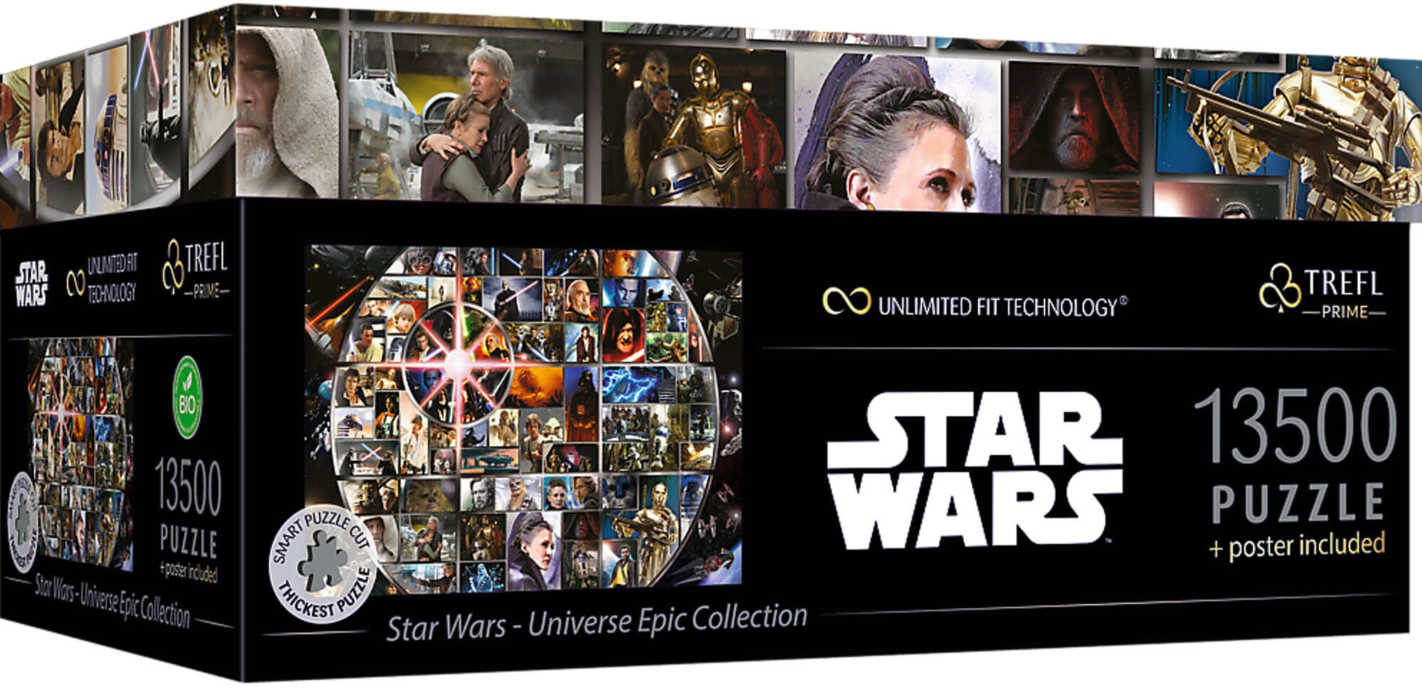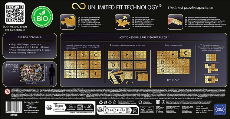 Nyd episke plakater og illustrationer fra den legendariske verden STAR WARS i den unikke Universe Epic Collection. Takket være UFT-teknologien kan du frit kombinere motiverne og skabe dit eget collagebillede. Sættet er ideelt til krævende puslespilsentusiaster og fans af sagaen, der søger en udfordring og en samleroplevelse.