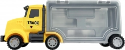 Opdag et komplet sæt til en lille byggeplads. Den robuste lastbil med praktisk boks gemmer og transporterer alle de medfølgende maskiner. Takket være friløbshjulene bevæger køretøjerne sig let på forskellige overflader og understøtter kreativ leg.