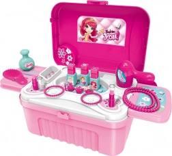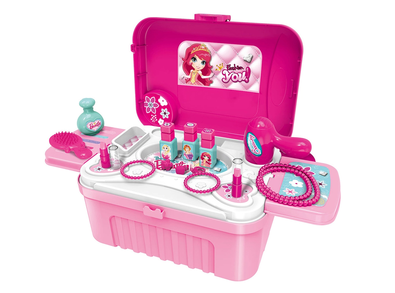 Dette lyserøde kosmetiksæt er ideelt til små pyntesøstre, der elsker fantasifuld leg. Den praktiske kuffert med hjul og teleskophåndtag kan nemt forvandles til et stabilt sminkebord med integreret spejl. Samtidig giver den rigelig opbevaringsplads til alt tilbehør.