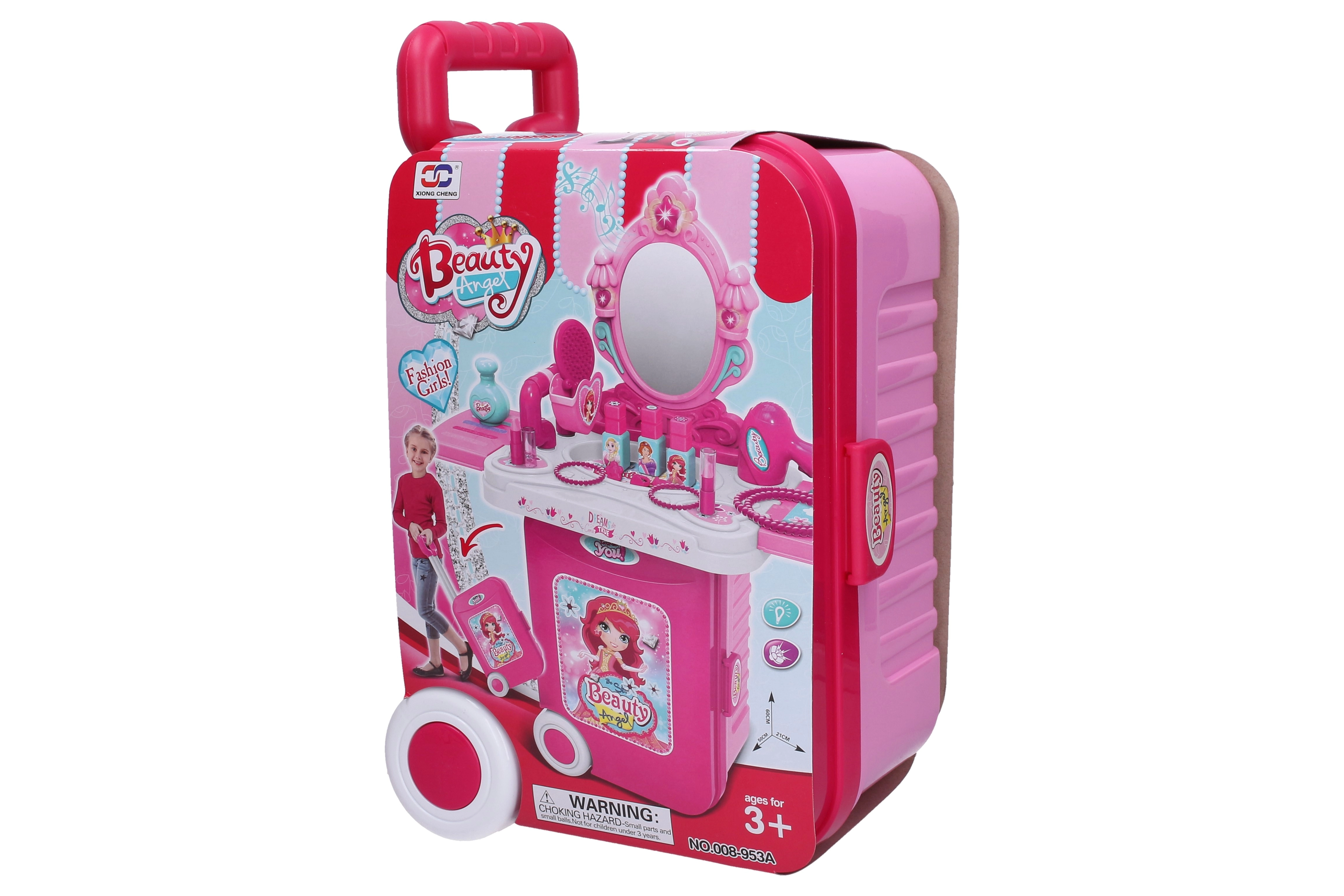 Let transportabelt sæt til små stylister – træk håndtaget ud, kør på hjulene og leg hvor som helst.