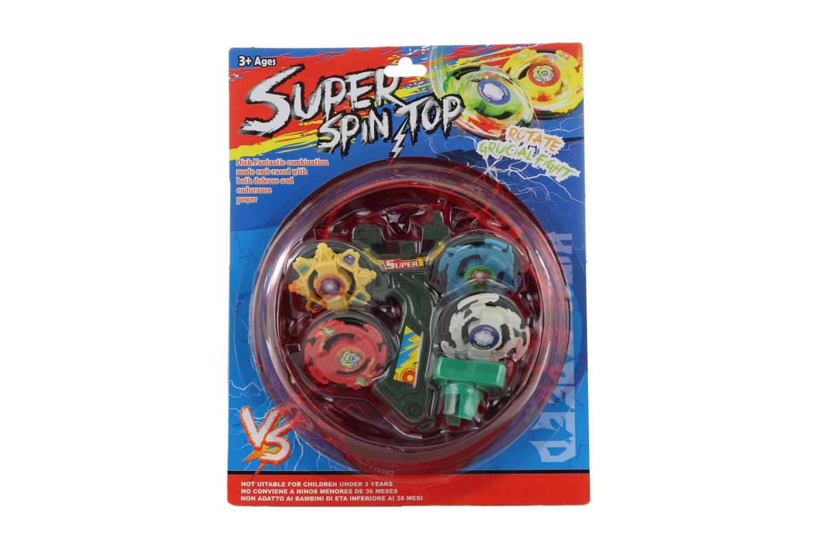 Sjovt sæt til både små og store fans af snurretoppe: affyringssnurretoppe med plastarena med en diameter på 17 cm, 4 farvede snurretoppe og et affyringsapparat til hurtig start. Kan snurres frit eller i arenaen, ideelt til konkurrencer og træning af færdigheder. Velegnet fra 3 år.