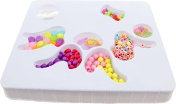 Æsken er overskuelig og praktisk til opbevaring, så perlerne let kan sorteres og transporteres. Takket være de forskellige former og farver kan børn lave armbånd, halskæder og andre originale accessories.