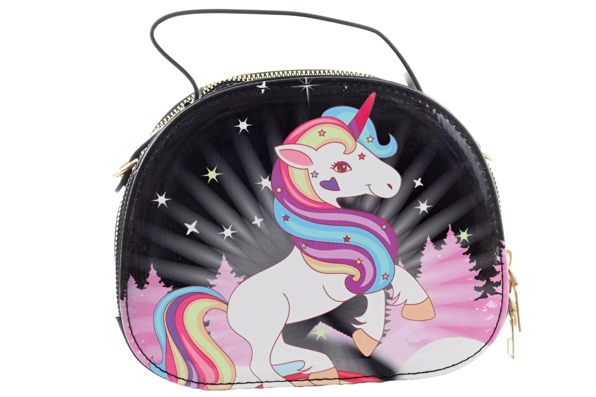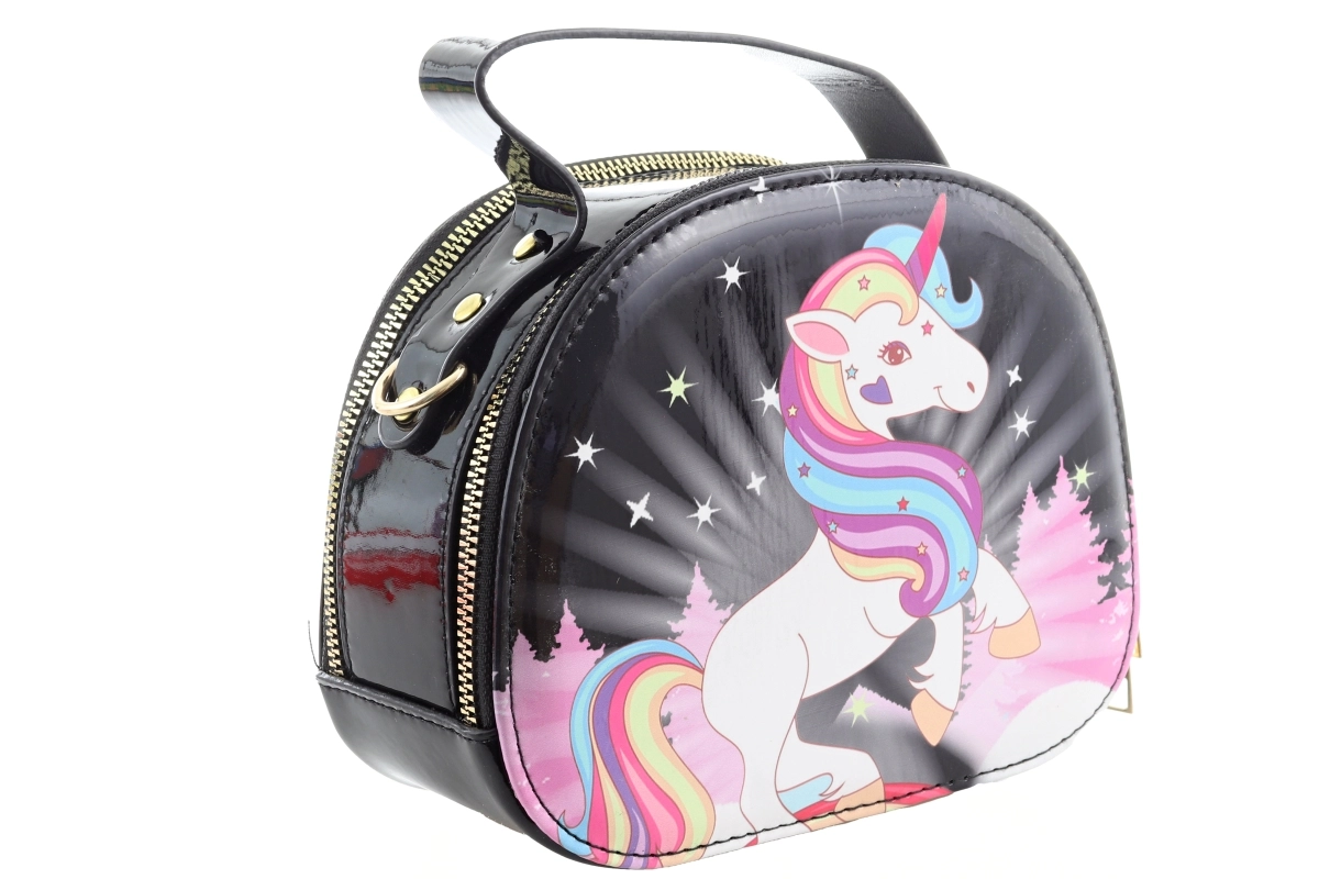 Denne stilfulde taske med et magisk enhjørningemotiv er et fantastisk tilbehør til både børn og unge. Glinsende, let at rengøre overflade og solidt håndtag sikrer behagelig og langvarig brug. Takket være ét hovedrum med lynlås har du alle småting sikkert opbevaret.