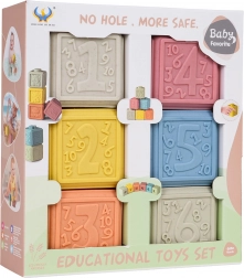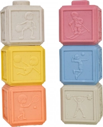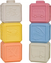 Et økologisk sæt med 6 bløde klodser i pastelnuancer giver uendelige muligheder for leg og læring. Hver klods har en anderledes overfladestruktur og motiver, der understøtter finmotorik, hånd–øje-koordination og sanseudvikling. Takket være det sikre, bløde materiale er de ideelle til tumlinger og kan også bruges som bidelegetøj under tandfrembrud.